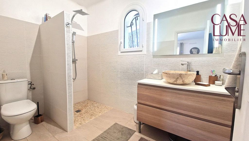 La maison est de type F4, elle est composée d’un beau salon / salle à manger avec une cheminée en granit, d’une cuisine indépendante entièrement équipée et aménagée, d’un cellier, d’une suite parentale avec sa salle d’eau, de deux chambres et une salle de bain.