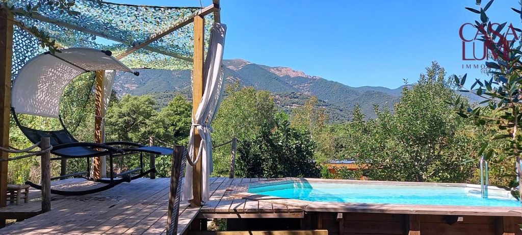 Vous serez séduits par ce magnifique écrin naturel de 6300 m² proche d’Ajaccio avec une maison atypique entièrement autonome en eau et électricité. De plus, la propriété offre deux gîtes dont le rapport locatif est très intéressant pendant la saison estivale.