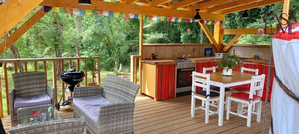 Les gîtes sont deux yourtes indépendantes possédant des terrasses et des espaces de vie extérieurs intimistes très appréciés des vacanciers. Elles ont respectivement une superficie de 32 et 20 m². Une piscine hors sol est installée proche de la grande yourte. Actuellement les deux yourtes sont proposées à la location saisonnière et permettent une bonne rentabilité.