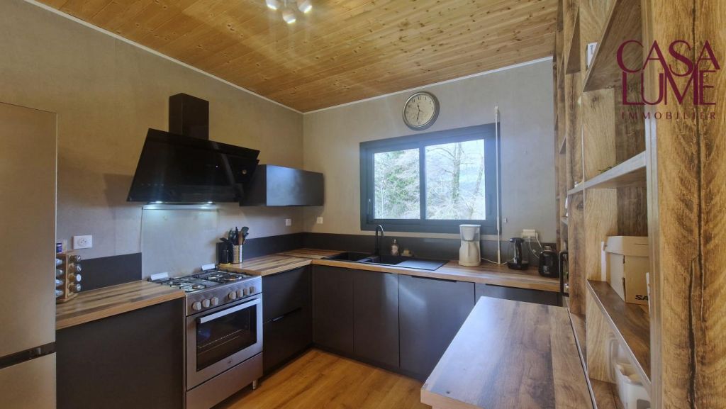 La maison au style contemporain est composée d’une grande pièce de vie avec une cuisine entièrement aménagée et équipée, de 3 chambres, d’une salle de bain, d’un wc et d’une buanderie. La construction est récente (2023), elle est autonome grâce à des panneaux solaires et un forage. C’est une construction en bois (bardage en douglas) offrant une isolation et un confort de vie supérieurs, DPE et GES en A. Les menuiseries sont en aluminium double vitrage avec volets roulants et il y a une climatisation réversible dans la grande pièce de vie. De belles terrasses entourent la maison dont une couverte de 22 m².
